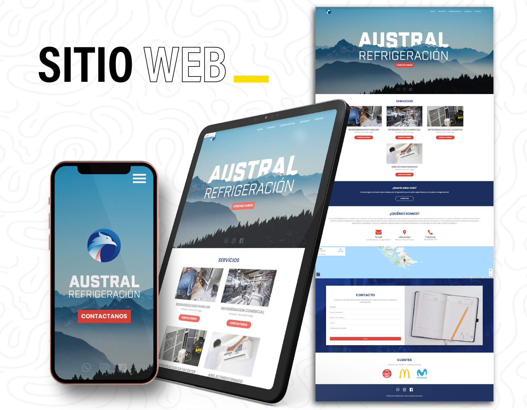 Diseño y desarrollo de sitio web, identidad de marca con creación de logotipo, y diseño de tarjetas personales.